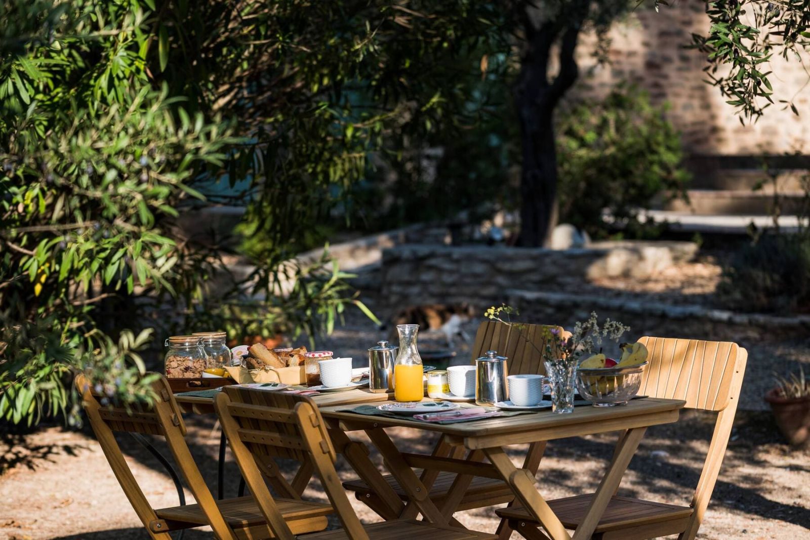 « Nous sommes en pays cathare, mais point de chevalier, ni de camisard. Juste du soleil, des pierres sèches et le bruissement du vent dans les pins d’Alep, cyprès et oliviers. »